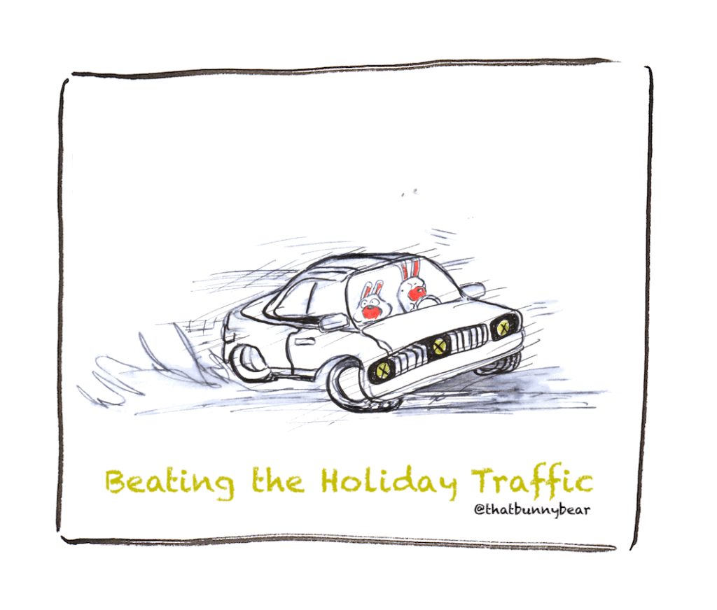 Someone will inevitably say, “Why are you early? What happened…”Instead, we operate on this invisible buffer zone of lateness, where showing up ten minutes behind schedule feels like the normal baseline of love and chaos. After all, it shows your family that you ARE in fact successfully adulting. So successful that you’re too busy to be on time!